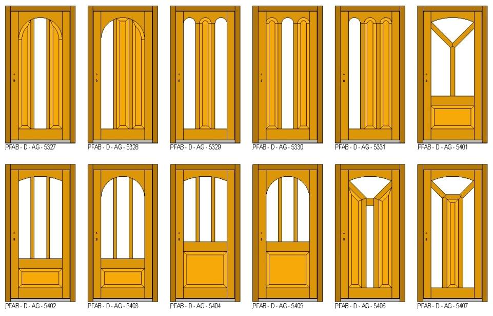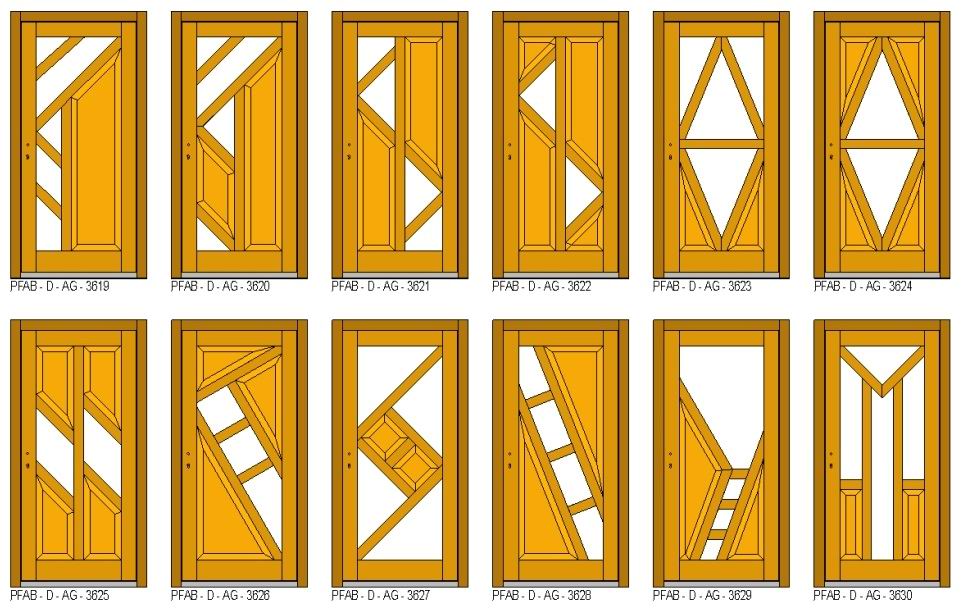 mit abgeplatteten Massivholz-Füllungen und Glasfeldern |